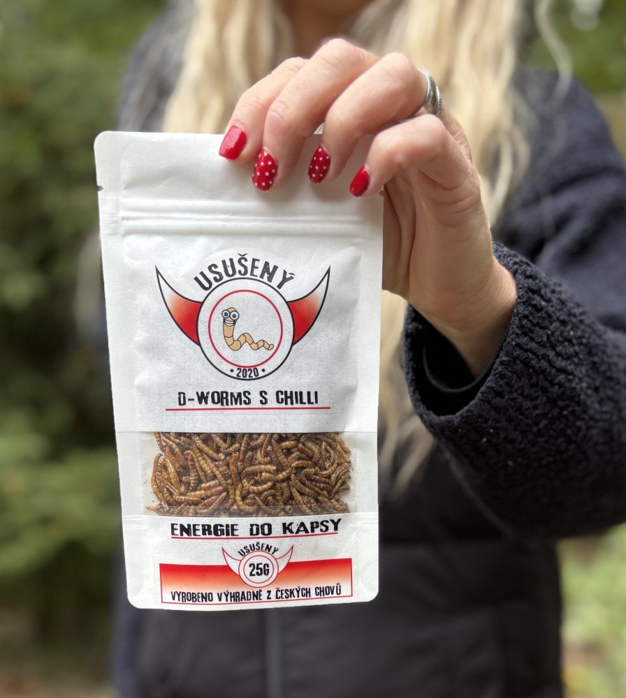 Jsi dělník, manager, student, učitel, sportovec, umělec, nebo prostě jen milovník nevšedních pochoutek? Naše D-Worms je pro tebe ideální volbou! V malém sáčku najdeš porci plnou bílkovin! Na 1g D-wormse potřebujeme 3g živého moučňáka !